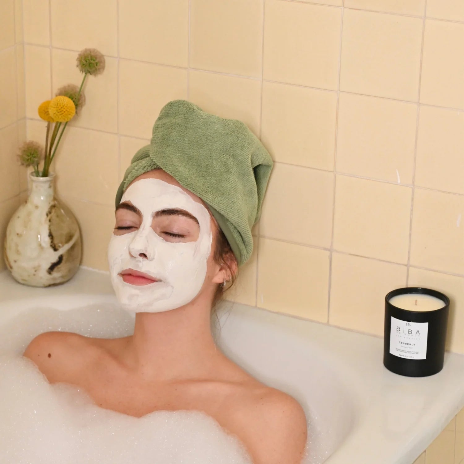 The Tenderly scented candle is more than a fragrance—it's an atmosphere. Carefully crafted with natural coconut wax and infused with a signature scent designed by Biba herself, Tenderly brings the serenity of the Biba Los Angeles skincare studio into your personal space. The comforting blend of Moroccan Mint and Karachi Blood Orange offers a clean, modern aroma that is at once invigorating and soothing.