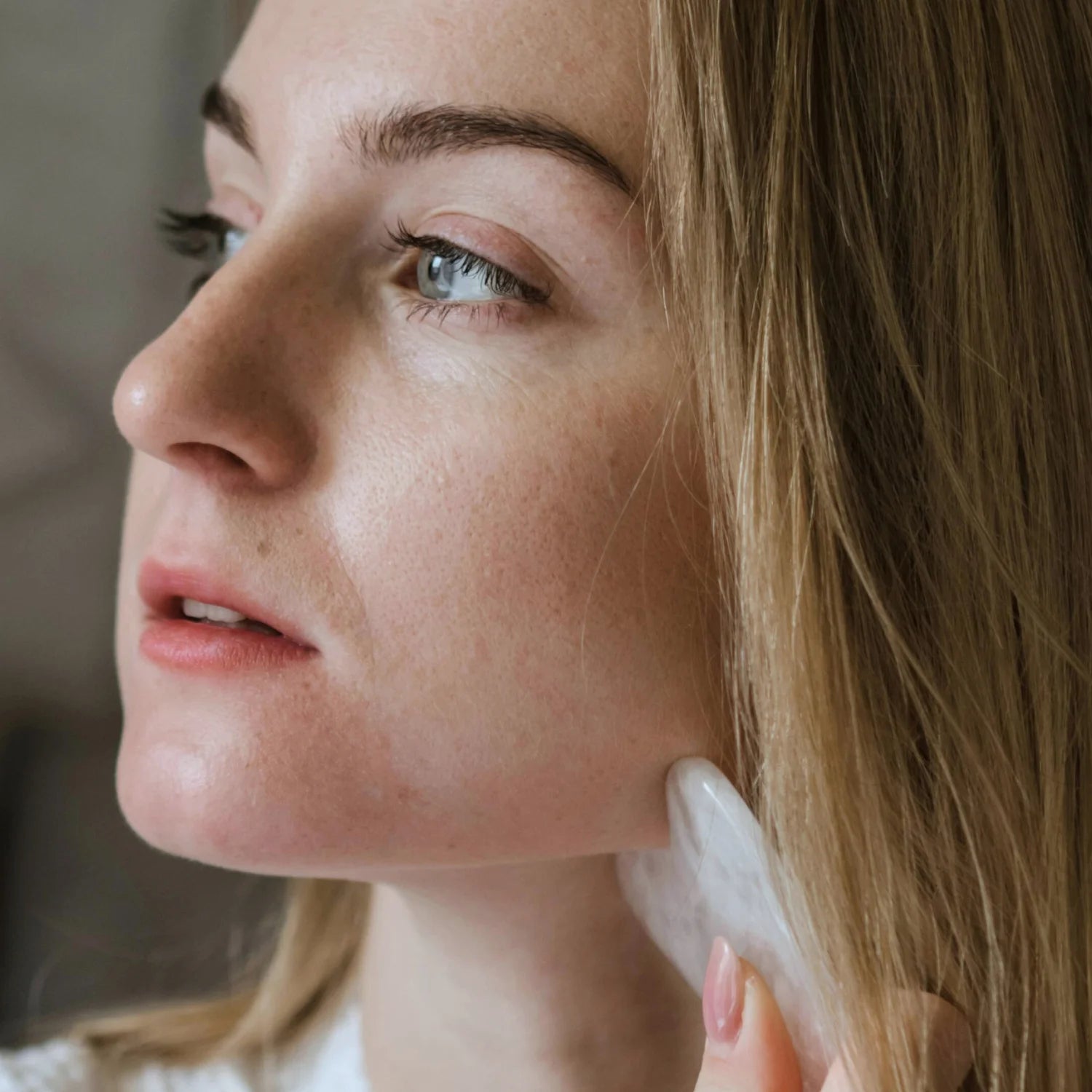 Through repeated, intentional strokes, the Gua Sha tool improves circulation and encourages oxygen-rich blood to flow to the skin’s surface. This not only boosts radiance but also supports cellular regeneration and a healthier complexion overall. By relaxing tight muscles—especially along the jawline, brow, and forehead—it helps soften the look of fine lines caused by facial tension.